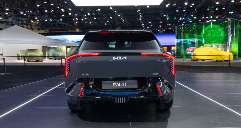 Wersje GT EV3, EV4 i EV5 będzie można odróżnić nie tylko po wspomnianych 20-calowych felgach aluminiowych, ale także po seledynowych zaciskach hamulców (znamy je choćby z EV6 GT), lakierowanym na czarno dachu i specyficznym świetle przeciwmgłowym wbudowanym w tylny zderzak, nawiązującym do tych stosowanych w motosporcie.