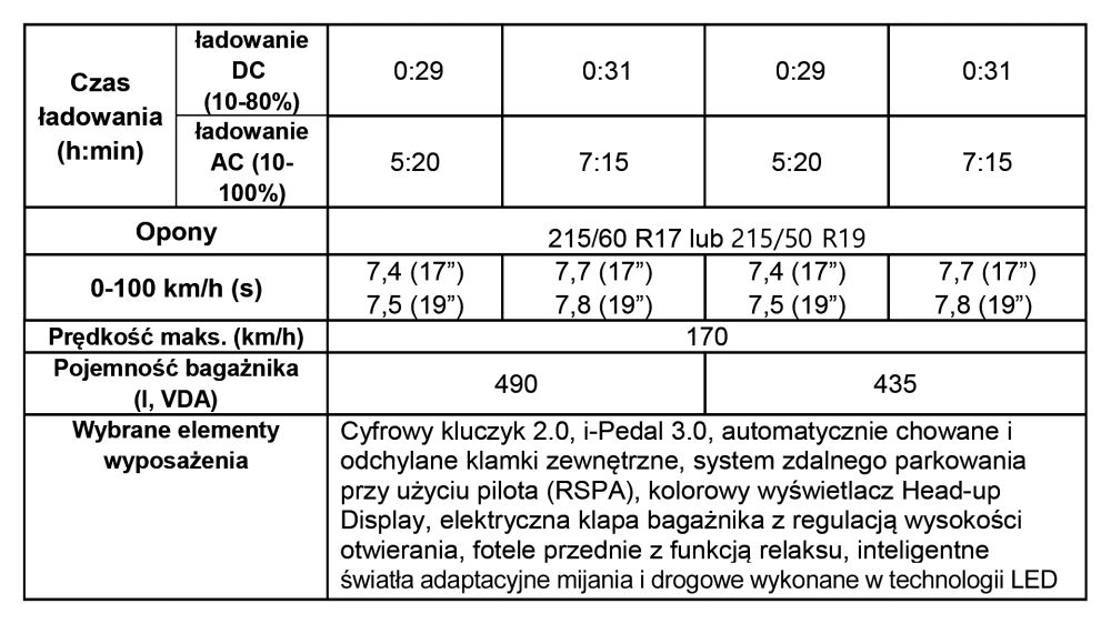 • Zasięg do 633 kilometrów dla fastbacka oraz do 625 km w hatchbacku dotyczący komfortu i wydajności w każdych warunkach