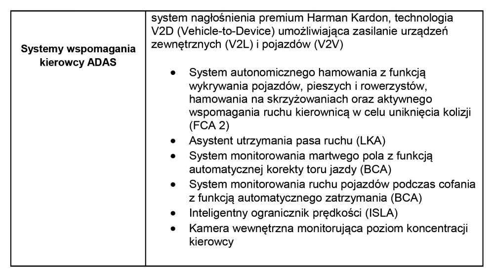 Dodatkowy, EV4 obsługujący klucz cyfrowy Kia (Digital Key 2), który umożliwia otwieranie auta przy użyciu smartfona lub smartwatcha oraz udostępnianie klucza innego użycia.