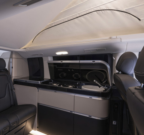 ·       Nowa koncepcja oświetlenia: oświetlenie ambientowe LED w podnoszonym dachu oferuje różne, wybrane przez użytkownika opcje – od chłodnego, energetyzującego światła po ciepłe i przytulne odcienie – zgodnie z preferencjami podróżnych. Dodatkowo, nowe otwierane okno dachowe zapewnia więcej światła dziennego we wnętrzu i świeże powietrze [1], a w nocy pozwala na niezakłócony widok na rozgwieżdżone niebo.